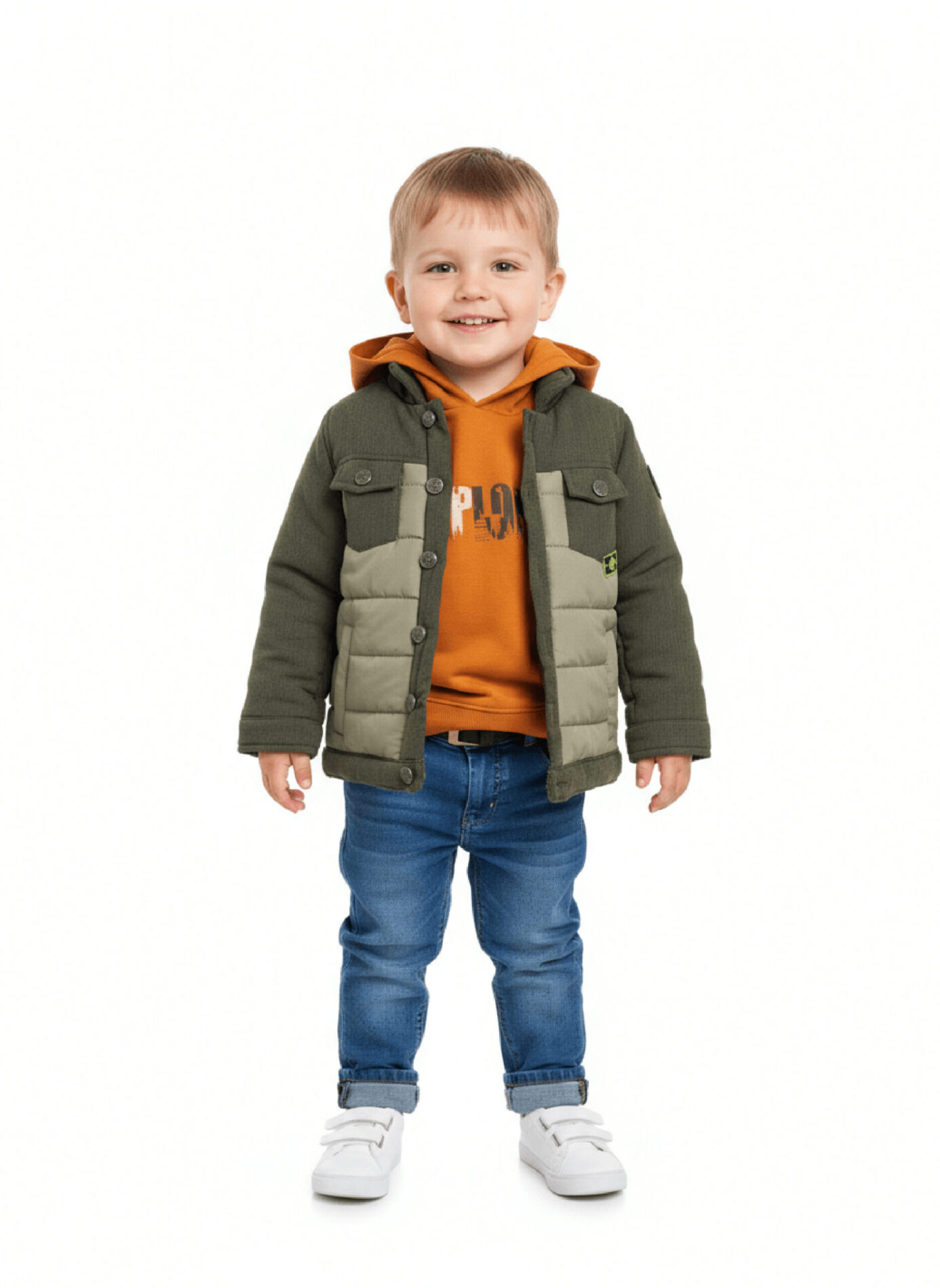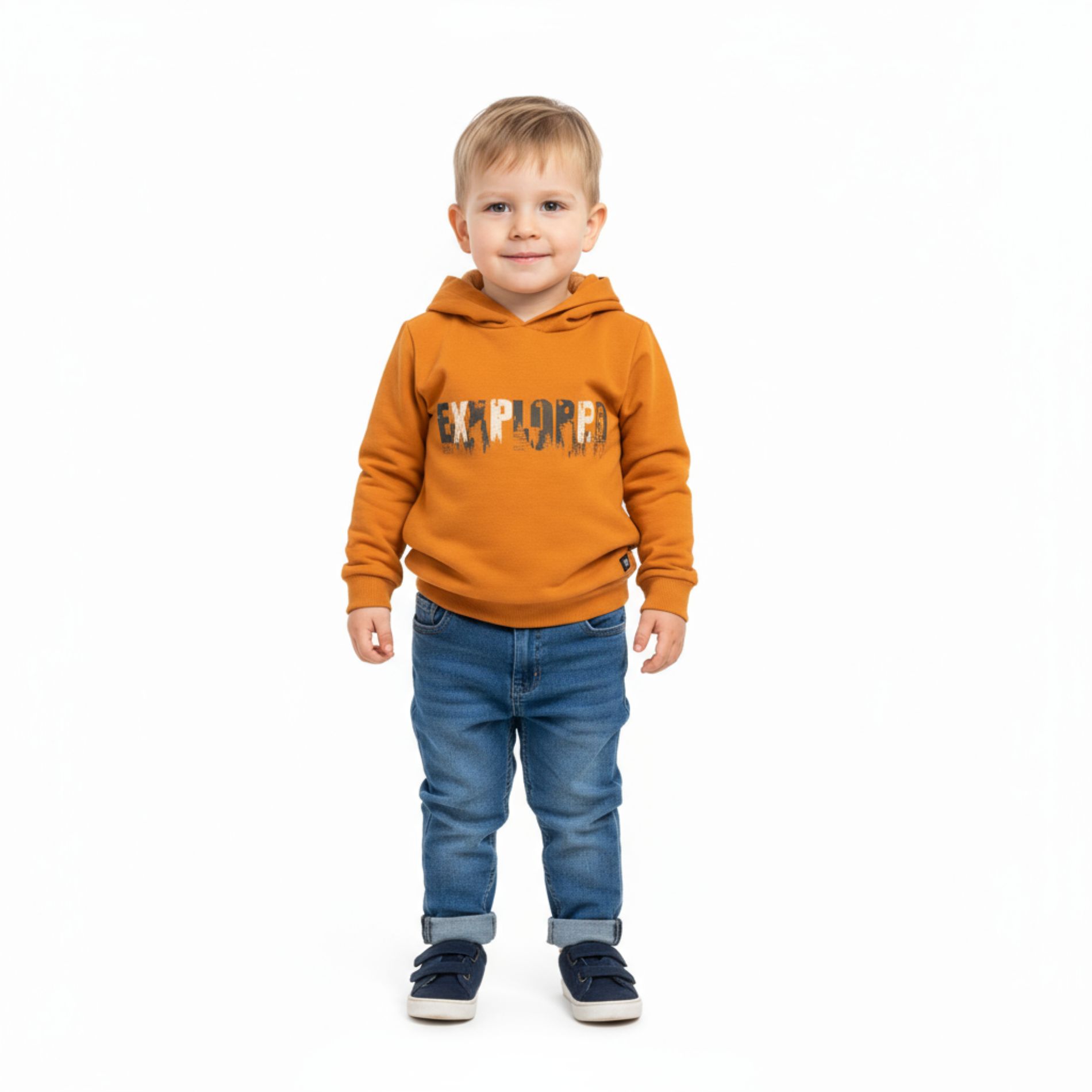 - Hoodie: In leuchtendem Orange mit EXPLORE-Print – ein echter Hingucker.