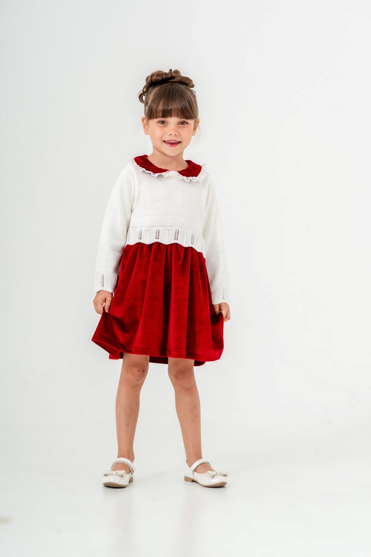 Festliches Kleid mit Veloursrock & Strickoberteil