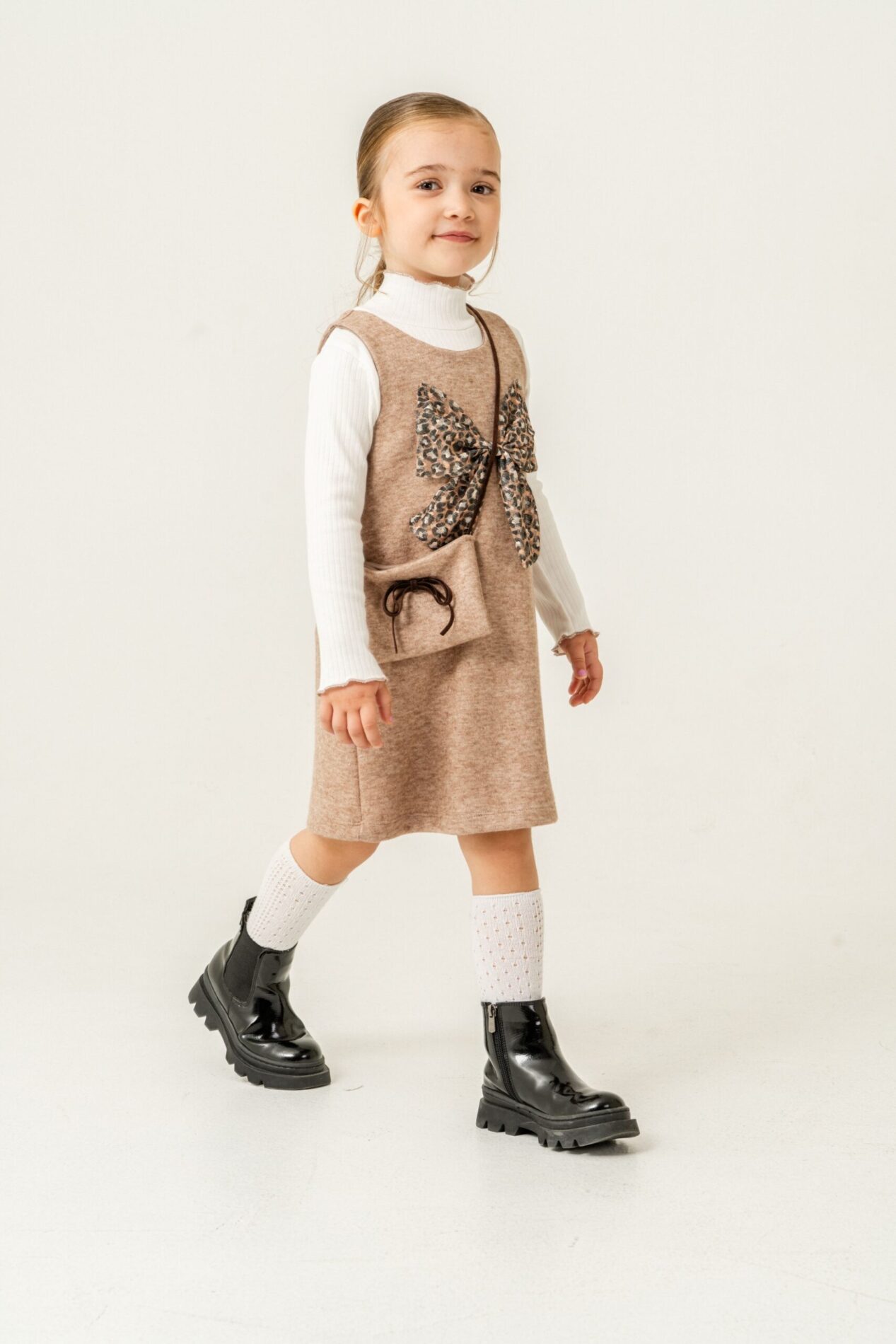 Festliches Strickkleid mit Schleife & Umhängetasche
