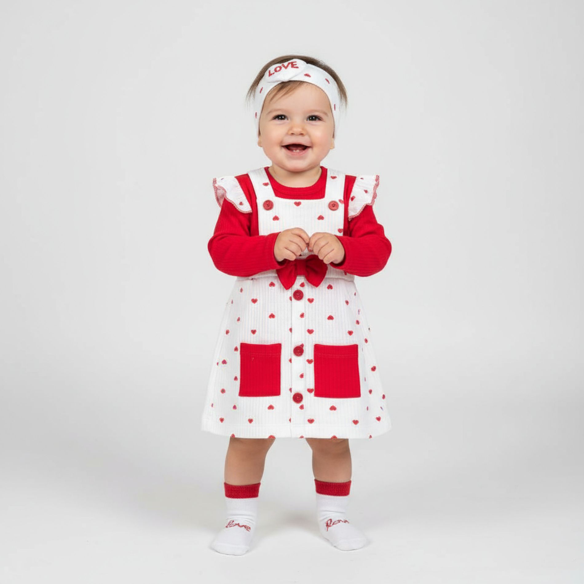 - Kleid mit Herzmuster, Rüschen und Schleife