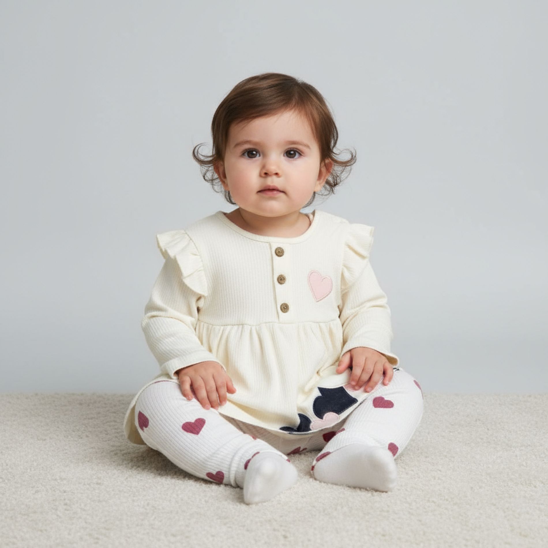 - Mit Rüschenärmeln, Knopfleiste und Herz-Detail auf der Brust