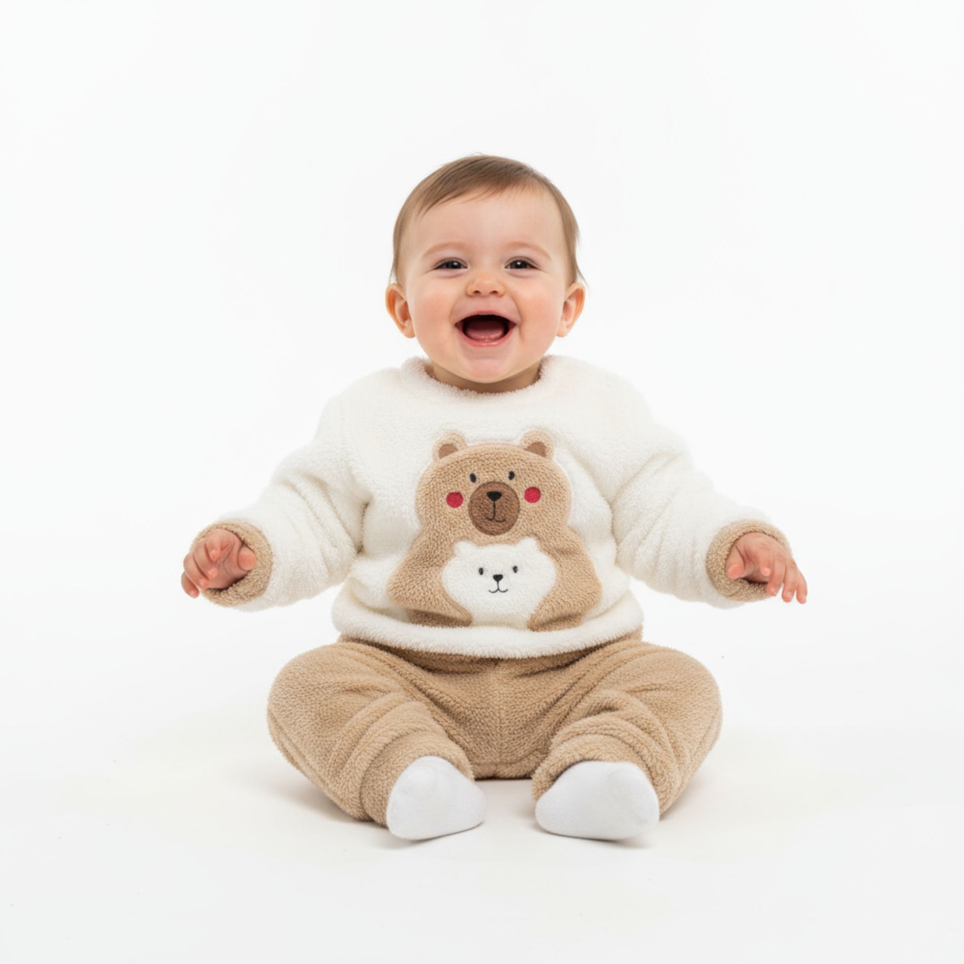 • Langarm, kuscheliger Fleece-Stoff  mit aufgesticktem Bärenmotiv