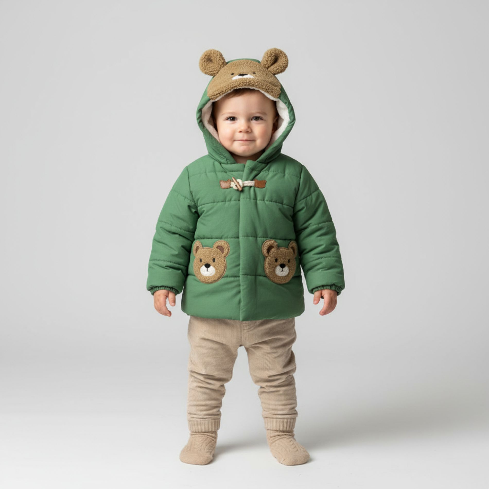 - Verspielte Bärenoptik mit applizierten Taschen