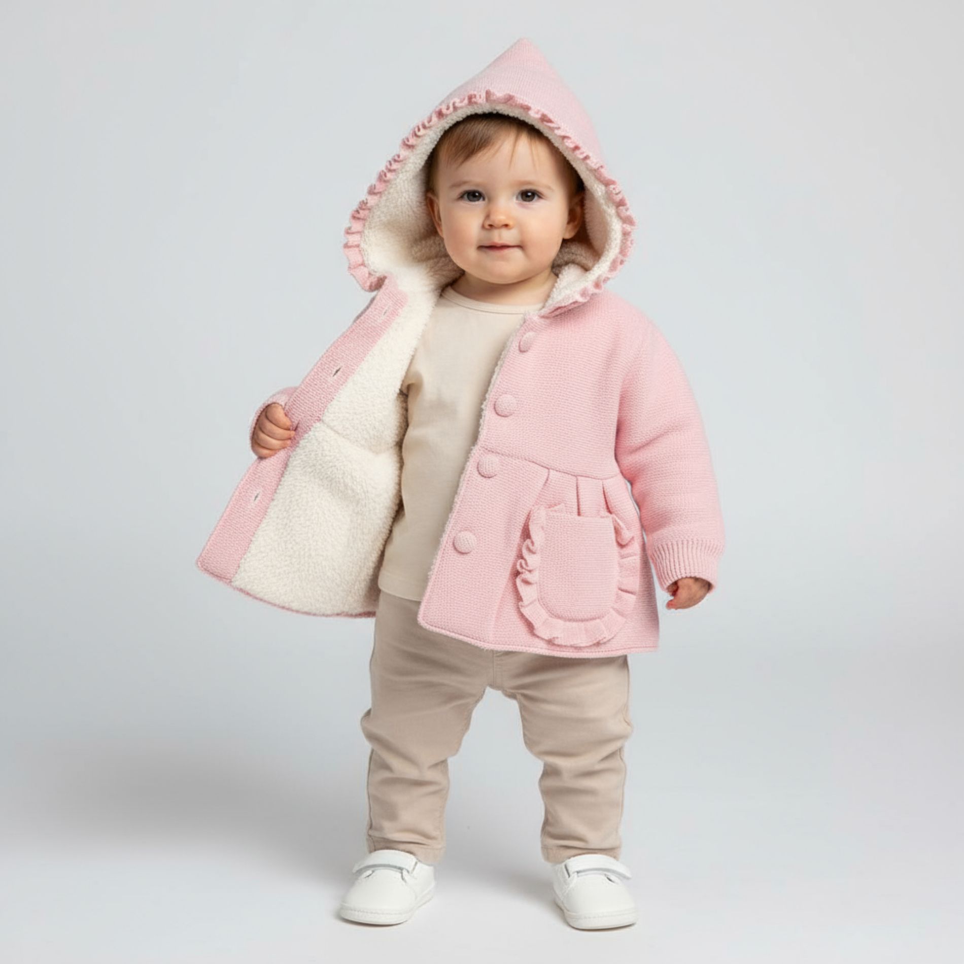 • Warme Baby-Strickjacke mit Teddyfutter
